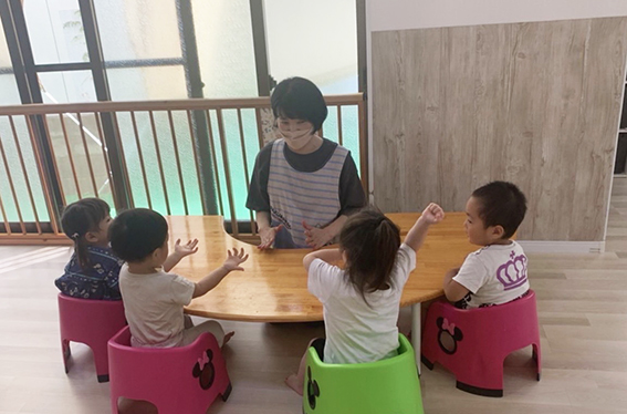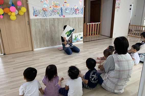 外国人の先生による英語クラスを毎週実施しています。一緒に歌を歌ったり、絵本を読んで